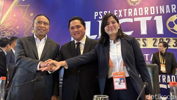 Menteri Badan Usaha Milik Negara (BUMN) RI, Erick Thohir resmi terpilih sebagai Ketua Umum (Ketum) PSSI periode 2023-2027 sesuai hasil Kongres Luar Biasa (KLB) di Hotel Shangri-La, Jakarta Pusat, Kamis (16/2/2023).